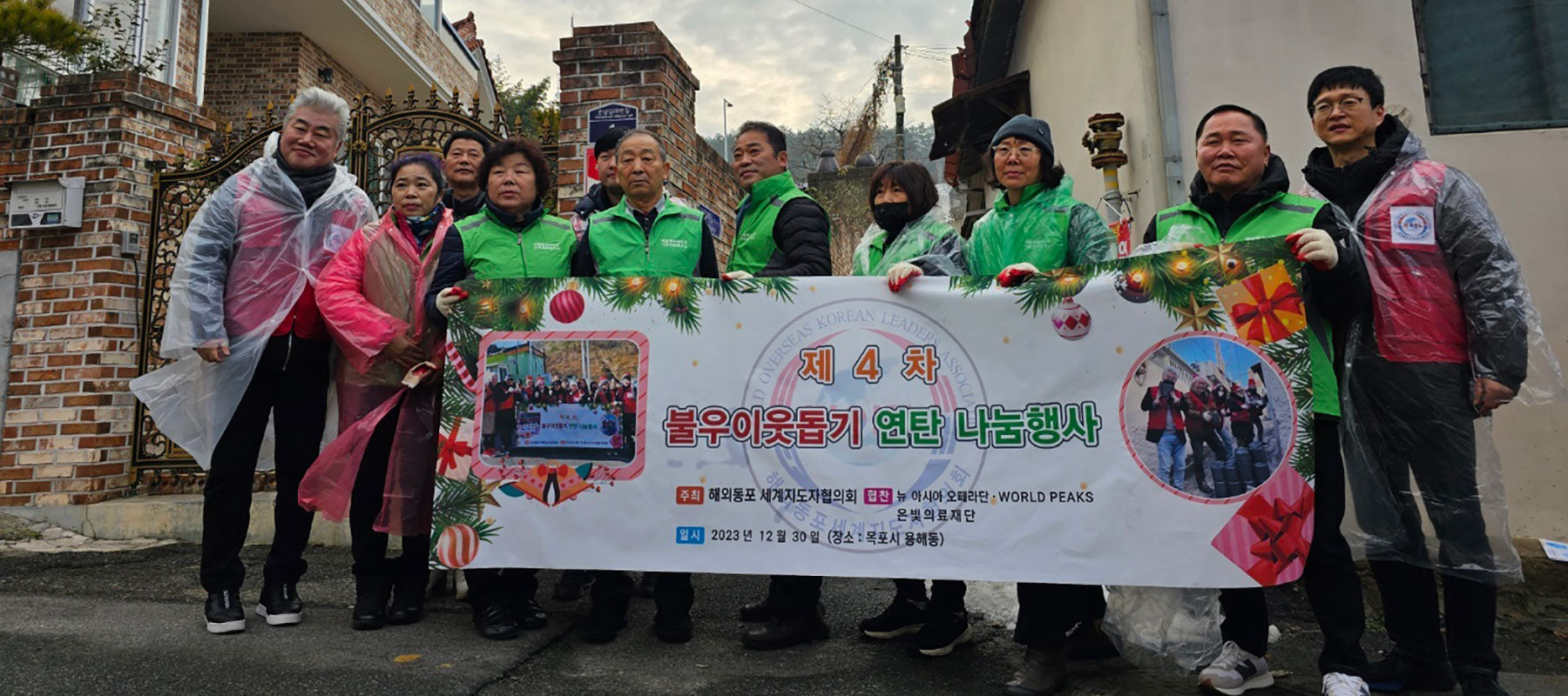 해외동포세계지도자협의회 연탄나눔행사 진행 - 2023년 12월 17일 (부산) - 2023년 12월 30일 (목포) 해외동포 세계지도자협의회, 목포서 연탄나눔으로 이웃사랑 실천 해외동포 세계지도자협의회와 지구환경운동본부가 연탄 봉사를 마치고 내년에도 이웃 사랑 실천을 다짐하며...